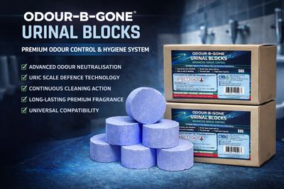 Upgrade your washroom standards with ODOUR-B-GONE® Urinal Blocks, a premium solution engineered for continuous cleanliness, powerful odour control, and long-lasting performance in high-traffic environments.